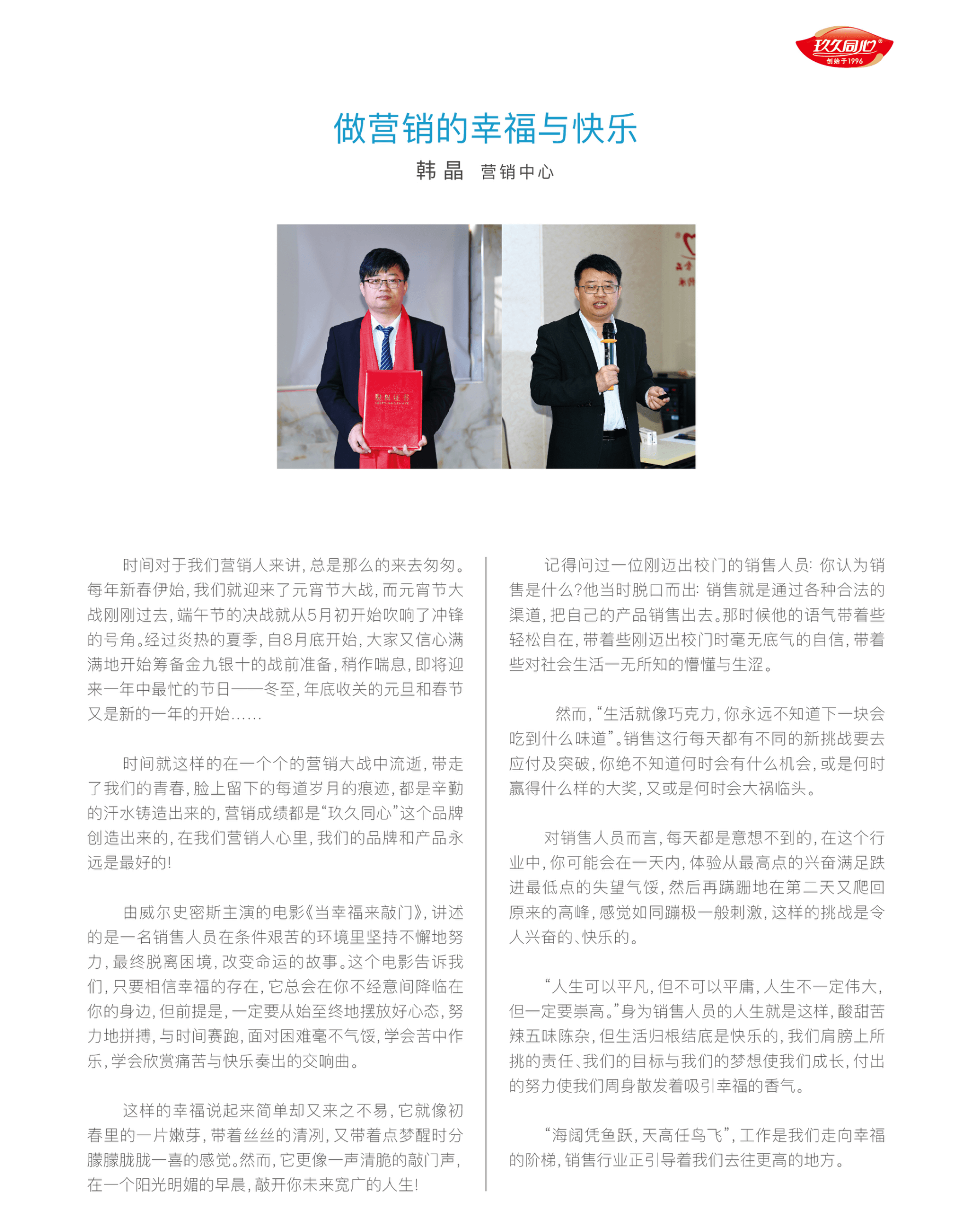 自2020年,玖久同心食品集團(tuán)年刊創(chuàng)刊號(hào)發(fā)行,年刊便成為記錄集團(tuán)發(fā)展歷程、企業(yè)突出成就的重要載體,同時(shí)可以讓員工更具企業(yè)認(rèn)同感、自豪感,可以更好的調(diào)動(dòng)企業(yè)員工的積極性,提升企業(yè)員工的凝聚力,從而助力集團(tuán)更好更快的發(fā)展。