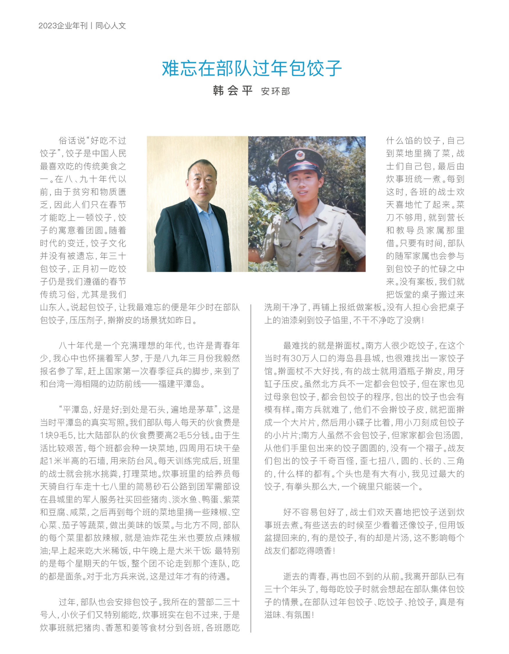 至今,集團(tuán)已發(fā)行3本年刊、1本特刊,為豐富刊物內(nèi)容,增強(qiáng)刊物可讀性,貼近員工生活,2023年年刊全新推出“同心人文”板塊,特向全體員工征稿,最終收錄文稿、攝影、書(shū)法作品共6篇。